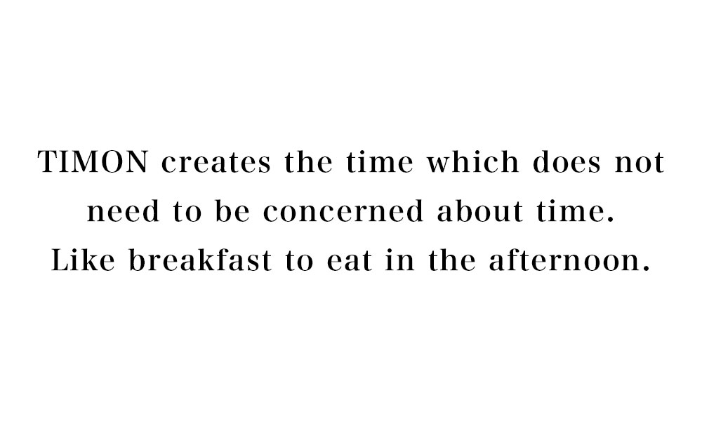 Do not decide the action at the time of the clock, Please enjoy yourself in the relaxed time flow with your own time, freed from everyday time.